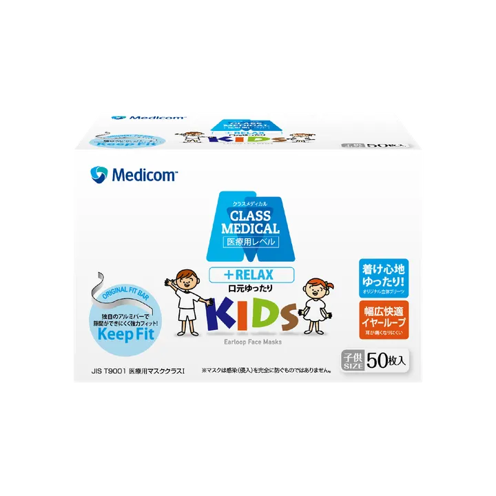 【クラスメディカル リラックス】不織布マスク/使い捨て/JIS T9001 医療⽤マスク_ 大容量(50枚入)こどもサイズ