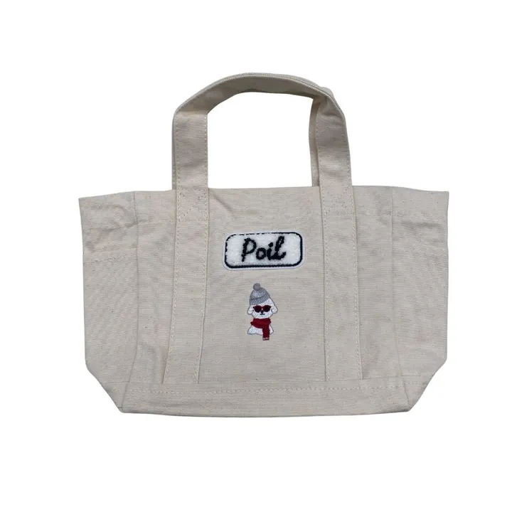 大人気の「ポワル」アレンジシリーズ第2弾! 今回は、ニット帽とマフラーで冬支度をしたポワルを繊細な刺繍で表現しました。さらにロゴ部分には、高級感のあるサガラ刺繍ワッペンをあしらった贅沢な仕上がりです。 厚手の14オンス素材は、毎日タフに使い込んでもへこたれない丈夫さが魅力。ブラックでクールに、生成りでナチュラルに。どちらも日常に馴染む、便利な「サイズ感」と「機能」を編集して詰め込みました。一度使うと手放せない、冬の日常を支える主役級バッグです。