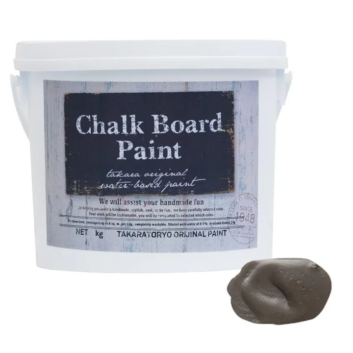 当店オリジナルの黒板塗料「Bitter Chocolate(ビターチョコレート)」です。 木部、外壁、内壁、壁紙、建具などに塗装できます。 【用途】 木工作品、屋内外のモルタル壁、厨房、天井、石こうボード、壁紙等 黒板塗料としてはもちろん、汚れの落ちやすい性質から子供部屋などにも最適です。 【特徴】 ・内外装建築用として使われます。 ・水で薄めて使えます。 ・3分艶です。 ・乾燥後は水にも強く、溶けません。 【使用方法】 ・素地の調整は、確実に行ってください。 ・古い壁面に、カビなどが発生している場合は、カビとり剤などで充分に処理してください。 ・チョーキング(白い粉が吹いたような状態)を起こした壁は、含浸シーラーを使い、古い壁を固めてから塗装してください。 ・塗料が伸びにくい時は水で薄めて使用してください。 【うすめ率:水】 ・刷毛・ローラー塗りの場合:0-5% ・エアスプレーの場合:10-15% 【乾燥時間】 ・指触乾燥時間(触って指につかなくなるまでの時間):30分 ・硬化時間:2時間 【塗装性状】 ・耐水性 30日以上 変化なし ・耐酸性 30日以上 変化なし ・耐アルカリ性 48時間以上 変化なし ・耐洗浄性 500回以上 【塗装上の注意】 ・気温5℃以下での使用は避けてください。 ・塗装用具は使用後直ちに水で洗って下さい。一旦乾くと、再び水に溶けません。 【参考小売価格】 ・200g 1800円 ・1kg 4980円 ・2kg 9500円 ・3kg 12450円 ・4kg 15800円 【塗れる面積】 -9m2