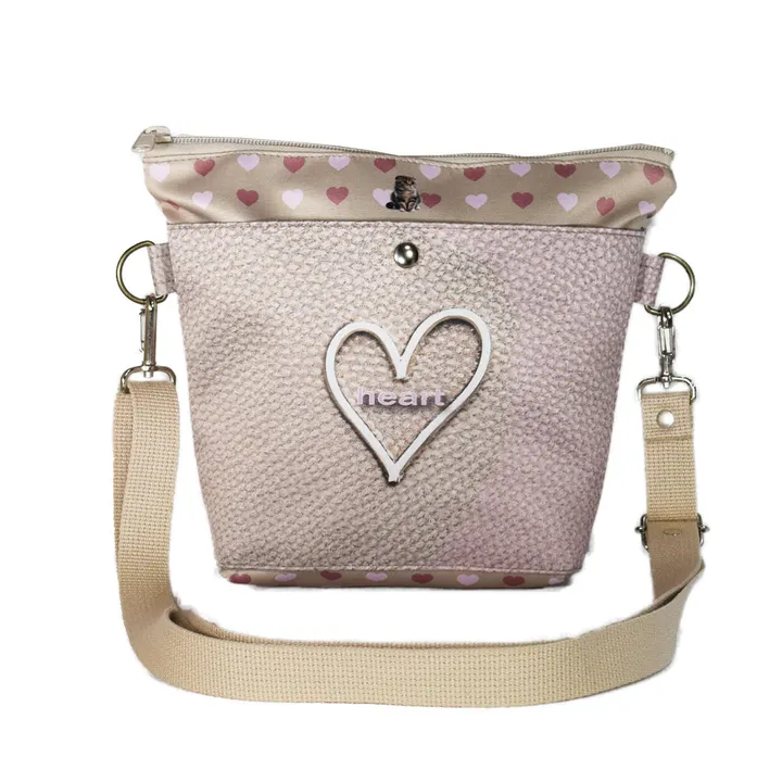 ティピィカレンのスエードハートモチーフあおりポケットショルダーバッグ 本体がファスナー開口部のボディに両面にあおりポケットになるようボディをつけたデザインです。同じ素材ですがデジタル染色による柄出しで全く違う素材を使ったようなユニークさを出しています。あおりポケット部分はスマフォを入れたり、出し入れが簡単なものなどいろいろな使い方ができます。 ストラップの長さ調整で、短くしてワンショルダーとして、長くして斜め掛けとして2WAY仕様ができます セカンドバッグや2個持ちバッグなど、ヘビロテなバッグとしてGood! スエードのポリエステル素材は、中肉素材で、硬さもあり丈夫で、軽さを追求しています。遮光性のある素材をデジタル染色でオリジナル柄を施していますので、他にない高級感とユニークなバッグになっています。 2色のピンクの牛革をベースにハートモチーフ、本体部分はベージュのスエード風にハート柄、犬や猫を小さくポイントに差し込んで、なんか楽しくなる、軽くて便利そんなバッグに仕上がっています。 インテリアファブリックにいろんな柄をデザインしカラフルで、こんな柄見たことない、楽しくなるバッグに仕上げています。また見た目からは驚くほどの軽量な素材なので、長時間の持ち運びも疲れにくく、使い勝手抜群です。 また、デザインにこだわって作られたこのハンドバッグは、どんなコーディネートにも馴染みます。シンプルな服装にさり気なく可愛らしさをプラスしたい時や、個性的なスタイリングを楽しみたい時にオススメです。 ※ハンドルやショルダーストラップの長さは調節できます。商品画像と実際の色合いは多少異なる場合がありますので、ご了承くださいませ。 デジタル染色とは デジタルデータをインクジェットプリンターにより、高精細に描画し昇華転写染色の技術により布を染色する加工方法。 使用する染料インクは顔料系インクとは違い、布の風合いを損ねず色落ちなどもほとんどありません。 分散染料による熱転写染色方式のためポリエステル素材への染色となります。 高発色、高精度のオリジナルテキスタイルに仕上がっています。 ¥11,000 ※この商品は、最短で3月21日(木)にお届けします(お届け先によって、最短到着日に数日追加される場合があります)。 ※こちらの価格には消費税が含まれています。 ※別途送料がかかります。送料を確認する ※¥10,000以上のご注文で国内送料が無料になります。 ※この商品は海外配送できる商品です。 数量 1 カートに入れる