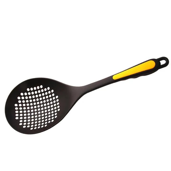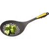 水切り、湯切り、汁切りが早い!水抜けを徹底したナイロン製掬いザル。加熱調理の炒め(180℃程度)にも使える耐熱200度設計。