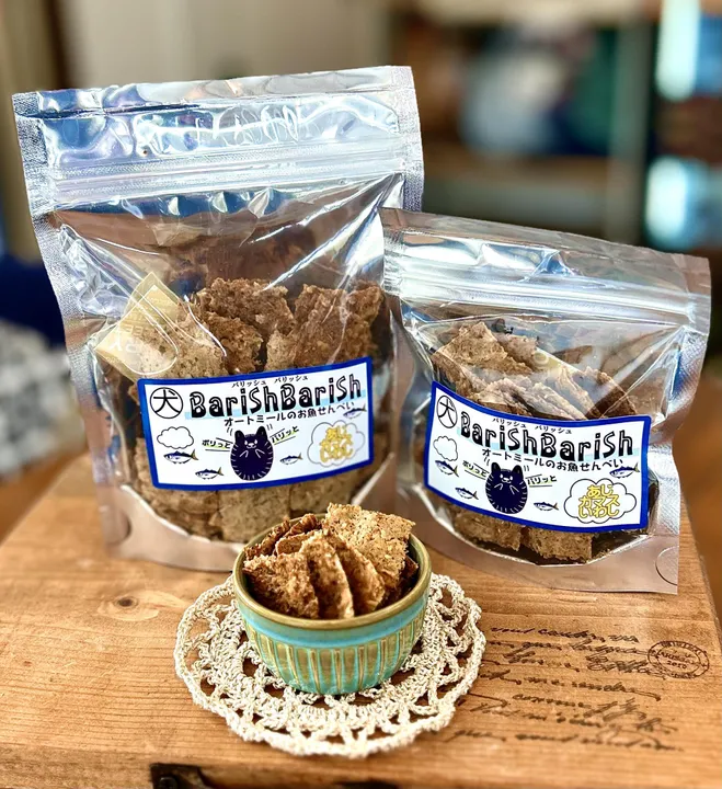 ヒトもワンコもニャンコも皆で一緒に食べられるおやつ、というコトでとても人気があり、パリっとした食感はつい手が伸びてしまう逸品です♪ 一度食べた方がリピートしてくださるコトでもその人気ぶりがうかがえます! 一度にたくさん購入した際は、賞味期限が違うものが入っていた時(ほんの数日の違いでしたが)丁寧に記載されたメモも同封してくださるなど、細部に至る細やかさがとても嬉しく、大切に梱包されている事が分かります! これからも我が店舗の看板商品としてお取り扱いさせていただきたい次第です♪