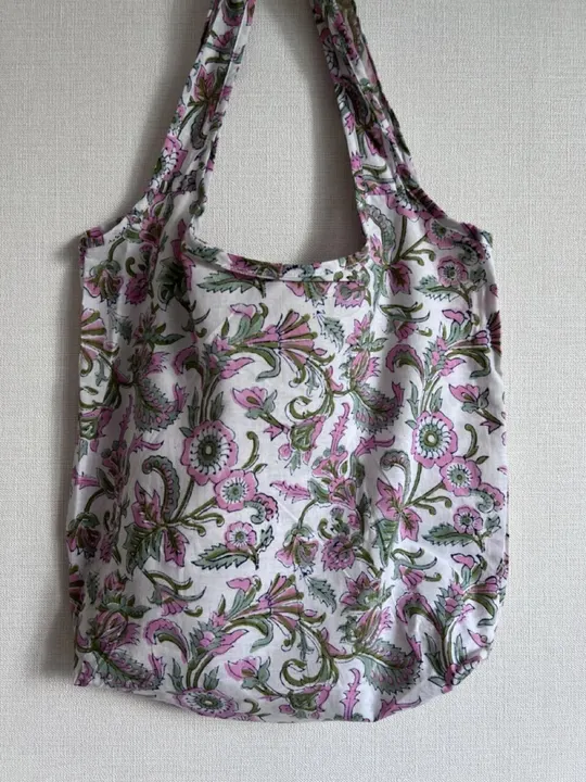 プレミアム・エコバッグ — 心をこめて、丁寧に作られた日常使いのバッグ 毎日使いたくなる、タイムレスなエコバッグ。 100%ハンドブロックプリントのコットンを使用し、インドの伝統的な職人技と使いやすいデザインを組み合わせました。柔らかくもしっかりとしたつくりで、折りたたんでポケットに収納でき、見た目も使い心地も抜群です。 このバッグについて 私たちのプレミアム・エコバッグは、日常の中に小さな喜びを届けたいという思いから生まれました。 一つひとつを丁寧に手裁ち・手縫いし、内側も外側もすっきりとした上質な仕上がりに。長くて幅広のストラップは肩にやさしく、バッグ本体に付いた収納ポケットのおかげで、ポーチをなくす心配もありません。さらに、小さなループを付けて、使いやすさをほんの少しプラスしました。 生地はインド・ラジャスタン州の職人によるハンドブロックプリントのコットン100%。私たちは、公正な価格で直接仕入れることで、伝統工芸を守り、職人たちの暮らしを支えています。プリントは肌にやさしく、色落ちしにくく、お手入れも簡単。ご家庭で洗濯やアイロンがけができます。 シーズンごとに新しい柄を発表し、毎回新鮮なデザインを楽しんでいただけます。 お客様からは「とても丈夫で、どこに行っても褒められる」と嬉しい声をたくさんいただいています。スーパーへのお買い物、ビーチへのお出かけ、旅行や普段使いなど、さまざまなシーンで活躍します。 そして、私たちはサステナブルブランドとして、地球への影響を常に考えています。多くのエコバッグが合成素材や再生プラスチックで作られている中、私たちは自然素材のコットンを選びました。洗えて、直せて、長く使えて、最後は自然に還る。このバッグは、機能的で美しく、そして環境にもやさしい存在です。
