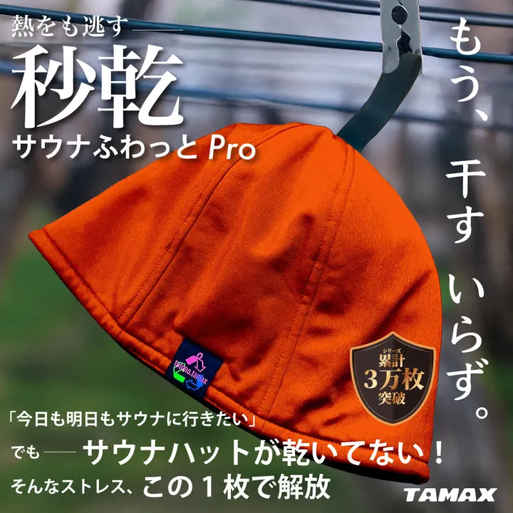 速乾効果による気化熱を利用し、熱を逃がすことで頭部を熱から守る多機能サウナギア また、水捌けの良さと速乾機能により、洗濯・脱水後の物干しの手間を軽減する事が可能です。 表と裏に高い速乾性と洗濯耐久性を備えた特殊素材を使用し、機能性と耐久性の両立を実現しました。 中綿にはサウナふわっとシリーズ共通の消臭・抗菌・防臭効果のあるリサイクルポリエステルフェルトを使用している為、衛生面でも安心してご利用頂けます。また、新たに遮熱性向上の為の空気層となる穴あき処理を施したリサイクルポリエステルフェルトを使用した4層構造です。 重量は約50gとサウナふわっとシリーズでは最も重いですが、高い速乾性により使用後の水分含有量を抑え、より「軽く感じる」サウナふわっとへと進化しました。 連日サウナに行く、サウナ愛好家の方にオススメのサウナハットです。 【サイズ】 FREE(男女兼用) 頭囲: 75 cm 深さ: 24 cm 【洗濯時のご注意】 ※乾燥機不可 ※洗濯機使用時は洗濯ネットをご使用下さい