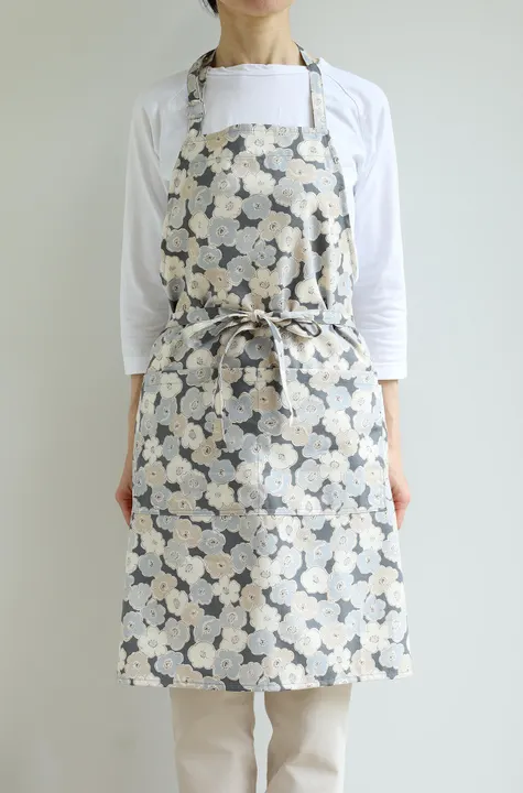 〈日本製〉フラワープリント ショートエプロン 2 ブルーグレー