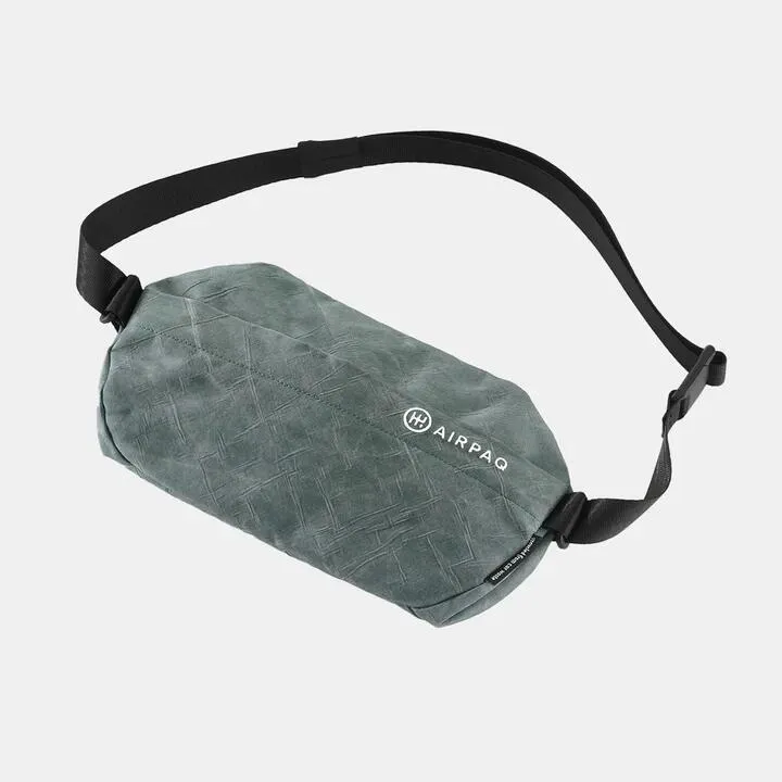 車のエアバッグの廃材をアップサイクルして作られたヒップバッグ。廃材を再利用するため、製品一つ一つがオリジナル、全てが一点物です。アップサイクル商品ならではの風合いとユニークなデザインが特徴的です。エキスパンダブル機能がついているため、荷物が量で容量を調整することができるようになっています。