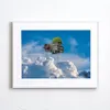 【現代アートポスター】 空想 青い空 空飛ぶ家 夢 写真コラージュ A4(S) フレームセット:白 29.4×38.4cm