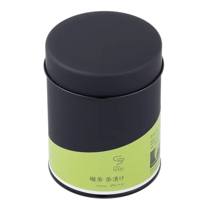 茶葉をそのまま食べる日本茶屋オリジナル碾茶のお茶漬け 京都宇治茶の抹茶原料でもある手摘みの碾茶に鰹・昆布・椎茸の旨味成分を凝縮した混合出汁と 彩鮮やかな京都産の五色あられをブレンドしたお茶漬けの素。 お味は下記の全7種類。 1.碾茶茶漬けの素(プレーン) 鰹と昆布出汁がベースで碾茶の特徴である旨味を堪能できるお茶漬け。 2.南高梅茶漬けの素 碾茶茶漬けの素がベースで和歌山産の紀州南高梅フレークを更にブレンドした甘酸っぱいお茶漬け。 3.わさび茶漬けの素 碾茶茶漬けの素がベースで静岡産のわさびフレークを更にブレンドした香り高くて口いっぱいに広がる辛さが癖になるお茶漬け。 4.玄米茶漬けの素 碾茶茶漬けの素がベースで今治産のオーガニック玄米をブレンドした香ばしくてまろやかな味わいのお茶漬け。 5.鮭茶漬けの素 碾茶茶漬けの素がベースで北海道産の鮭節をブレンドした鰹節より味が濃く、独特のうまみと甘味が特徴のお茶茶漬け。 6.柚子茶漬けの素 碾茶茶漬けの素がベースで宮崎産のオーガニックの柚子パウダーをたっぷりとブレンドした、柑橘の香りと風味が爽やかなお茶漬け。 7.味噌茶漬けの素 碾茶茶漬けの素がベースで国産の味噌フレークをブレンドした、かつおと昆布だしの旨味と味噌の風味が口いっぱいに広がるお茶漬け。
