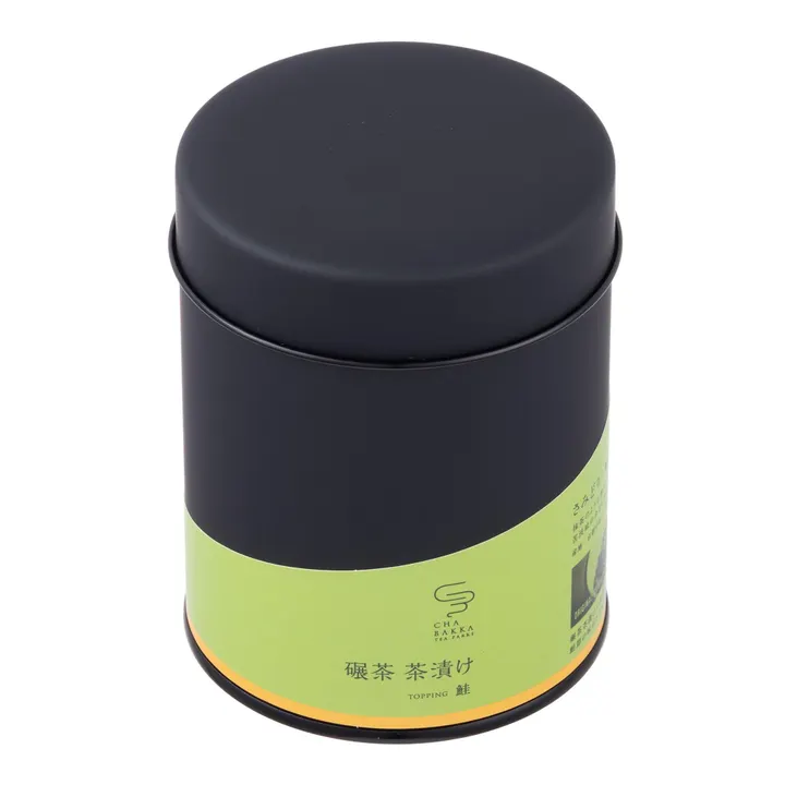 茶葉をそのまま食べる日本茶屋オリジナル碾茶のお茶漬け 京都宇治茶の抹茶原料でもある手摘みの碾茶に鰹・昆布・椎茸の旨味成分を凝縮した混合出汁と 彩鮮やかな京都産の五色あられをブレンドしたお茶漬けの素。 お味は下記の全7種類。 1.碾茶茶漬けの素(プレーン) 鰹と昆布出汁がベースで碾茶の特徴である旨味を堪能できるお茶漬け。 2.南高梅茶漬けの素 碾茶茶漬けの素がベースで和歌山産の紀州南高梅フレークを更にブレンドした甘酸っぱいお茶漬け。 3.わさび茶漬けの素 碾茶茶漬けの素がベースで静岡産のわさびフレークを更にブレンドした香り高くて口いっぱいに広がる辛さが癖になるお茶漬け。 4.玄米茶漬けの素 碾茶茶漬けの素がベースで今治産のオーガニック玄米をブレンドした香ばしくてまろやかな味わいのお茶漬け。 5.鮭茶漬けの素 碾茶茶漬けの素がベースで北海道産の鮭節をブレンドした鰹節より味が濃く、独特のうまみと甘味が特徴のお茶茶漬け。 6.柚子茶漬けの素 碾茶茶漬けの素がベースで宮崎産のオーガニックの柚子パウダーをたっぷりとブレンドした、柑橘の香りと風味が爽やかなお茶漬け。 7.味噌茶漬けの素 碾茶茶漬けの素がベースで国産の味噌フレークをブレンドした、かつおと昆布だしの旨味と味噌の風味が口いっぱいに広がるお茶漬け。
