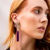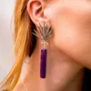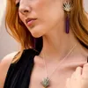 個性的で美しさを格上げする一品 リアルに再現されたアガベのポストピアス カットの施されたレモンクォーツとパープルのジェムストーンを 縦長のデザインにしています