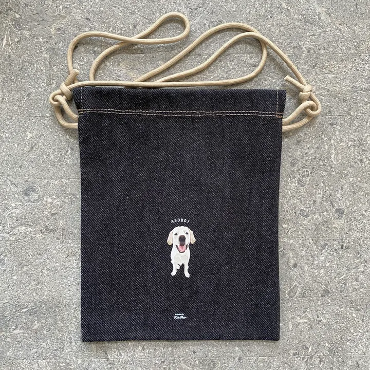 【お出かけにピッタリ】デニムサコッシュ 犬モチーフ ハンドメイド / 柴犬・ゴールデンレトリバー・ジャックラッセルテリア・ ラブラドールレトリバー・ビーグル・ミニチュアダックス・チワワ ラブラドルレトリバー / ブラックデニム