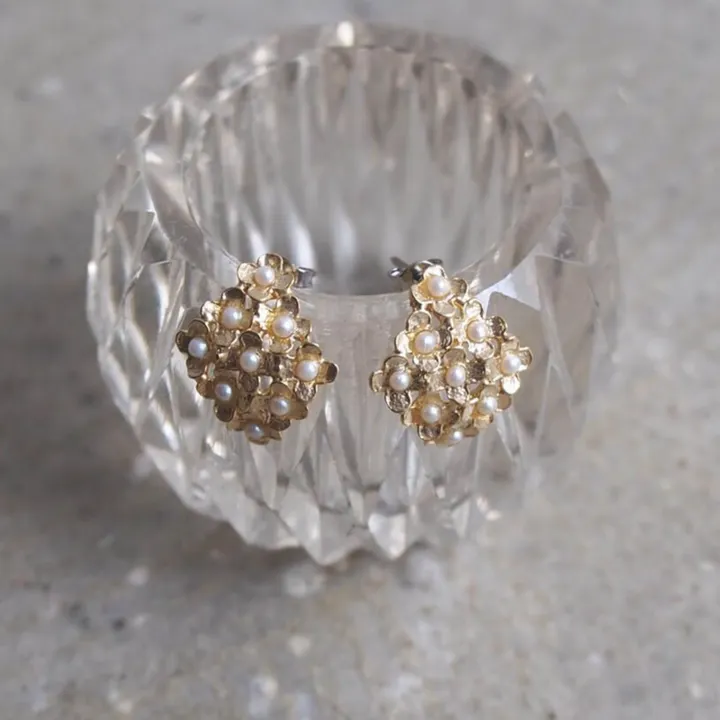 クラシカルなヴィンテージ感をまとうピアス /小花パールピアス*イヤリングタイプあり【Vintage】※BOX付き