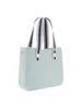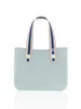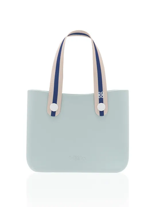 ◆旬な表情と大人っぽさを演出してくれる、スモークブルーをフレームにしたトートバッグ。ネイビー&ベージュのフラットハンドルをプラスすることで、くすみカラーをキリッと引き締めてくれる効果も。持ち歩くだけでお洒落を一歩リード出来ます。A4サイズが入るトートバッグです。 ■構成部品 Frame:Smoke Blue Nylon Flat Handles :Beige Navy Plastic Twists:Bright White