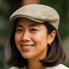 ピグメント加工を施した生地を洗いにかけたハンチング。サイズで女性向け、男性向けにし微妙にシルエットを変えています。