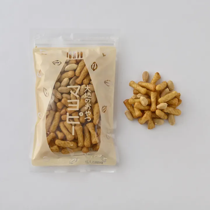 マヨネーズ味のあられと有機ピーナッツを 組み合わせた、その名も “マヨピー”。 精米したての国産もち米を使って焼き上げた サクッと軽い食感の生地に、 自然の味そのまんまマヨネーズ、 小麦を使わない国産丸大豆たまり醤油、 粗糖をからませた和風マヨあられ。 マヨネーズのほどよいコクと酸味に 醤油と粗糖がほんのり効いた和風の味わいです。 そこに、少し塩味のある大粒で風味豊かな 有機ピーナッツをカリッとひと噛み。 何ともくせになるおいしさです! 【価格改定のお知らせ】 ※2025年11月1日納品分より価格改定いたします。 希望小売価格 400円(税抜) → 430円(税抜) 卸売価格   320円(税抜) → 344円(税抜) 何卒よろしくお願い申し上げます。