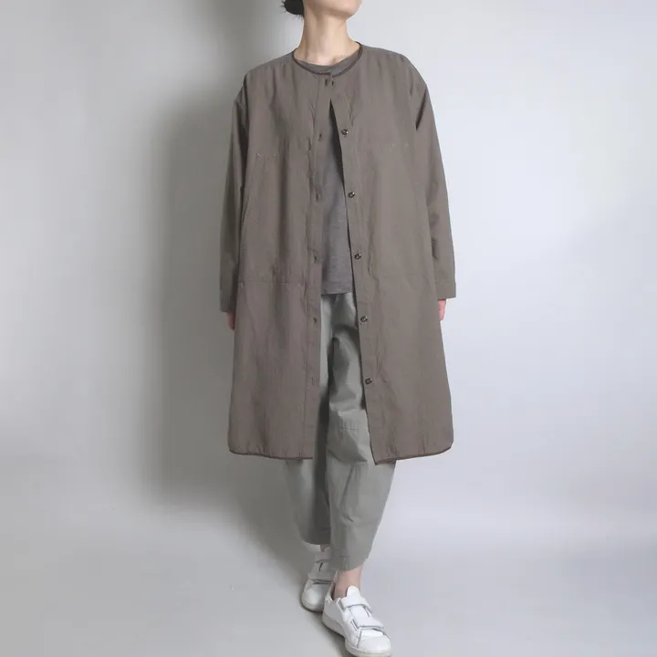 ●ITEM SIZE 02(women's M)*One size only ・身幅 約64cm ・着丈 約100cm ・肩幅(直線) 約56cm ・袖丈 約50cm ・アームホール(NPから直線) 約25cm *モデル身長:164cm / size 02 着用