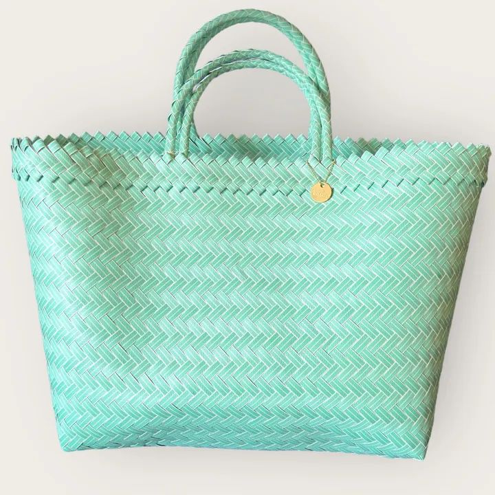 パサールバッグ ホワイトストライプグリーン (パステルグリーン地に白のライン) インドネシアのお母さんが手編みで作るプラカゴバッグ、 パサールバッグは、 軽くて丈夫で水洗いが出来ます。 PPバンドというプラスチック製の平たい紐で編まれていて、 驚くほど軽く、 重たい物を入れても壊れません。 水洗いが出来るので、 屋外で直置きしたり、 汚れ物を直接入れることが出来ます。 洗ってく繰り返し使えて、 丈夫で壊れないので、 長く使えて環境にも配慮したアイテムです。 デザインもシンプルで飽きが来なく、 カラーバリエーションも豊富です。 小さいサイズは日頃のお出かけに、 大きいサイズはエコバックやレジャーバッグに、 毎日の生活で快適におしゃれに持って頂けるバッグです。 ========================= 製品の背景 インドネシア語で 『PASAR(パサール)』 は『市場』という意味。 インドネシアには市場がたくさんあり、 新鮮な野菜や果物、お花などが売られています。 お母さんが手編みで編んで、 市場での買い物に使うカゴバッグとして、 パサールバッグは昔からインドネシアの人の生活の中にあります。 世界的にカゴバッグがファッションアイテムとして認知された今、 パサールバッグはジャワ島の田舎のエリアの主婦の内職の仕事となっています。 田舎のエリアは都心部と違い仕事が少ないため、 カゴを作る内職は貴重な収入源となっています。 ======================== DONATION kashiのパサールバッグには kashiのロゴ入りの真鍮チャームがついています。 このチャームには寄付が含まれていて、 チャーム付のバッグが一点売れるたびに30円の寄付が、 インドネシアバリ島を拠点に活動する環境団体 『SUNGAIWATCH』に寄付されます。 スンガイウォッチはプラスチックゴミの海洋流出を減らすため、 様々な活動をするフランスの団体です。 ======================= ご購入時の注意点 ロットにより色味が若干異なる場合があります。 海外製品のため一点ずつ形や大きさ、編み方の違いなどがあります。 テープに若干の色むらや、ねじれ、傷が入る場合があります。 海外での手作り品のためご了承下さい。(明らかな不良品の場合は検品にてはじいております。)