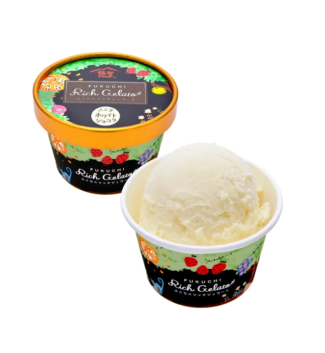 ※ケースロット(単位)は12個、36個、100個となっております。 1個からでも発送は可能ですが、通常どおりの送料がかかりますのでご注意ください。 多くのお客様からのご要望にお応えして誕生した、ふくち☆リッチジェラートが贈る至高のバニラジェラート。フランスの老舗ブランド「ヴァローナ社」が誇る最高級ホワイトチョコレート「イボワール」と、香り高いバニラビーンズを贅沢に使用し、プレミアムな味わいを追求しました。このフレーバーのために厳選した特別な牛乳と、カカオ分35%の上質なホワイトチョコレートが生み出す、絹のようになめらかな口どけ。そこに散りばめられたバニラビーンズの芳醇な香りが、より深い味わいと贅沢な余韻を演出します。フランス語で「象牙色」を意味する「イボワール」の名の通り、純白の輝きを持つ気品高いジェラートは、バニラ本来の豊かな風味を追求した渾身の一品。誰もが愛する王道のバニラフレーバーを、最高級の素材で表現した至福の味わいをご堪能ください。