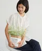 商品の特徴 ほどよいゆとりと抜け感が魅力のBOXYシルエットに、小さなスクエア柄をプリントした半袖ブラウス。リラックス感のあるルーズフィットながら、すっきりと見えるシンプルなデザインで、定番として着回しやすい一枚です。 生地の特徴 少し透け感のある、軽やかで肌離れの良いシャリ感素材を使用。スクエア柄は遠くからはドット柄の様に見える楽しい柄に。暑い季節も快適に着用できる、涼しげな着心地です。 コーディネート提案 ワイドパンツやデニムと合わせて、ラフでバランスの取れたスタイリングに。シンプルなスカートにもおすすめで、オンオフ問わず活躍します。 シーン別コーディネート提案 【アーバン・カジュアル】ワイドパンツで創る「最旬リラックス」 バスト132cmのたっぷりとしたBOXYシルエットを活かし、落ち感のあるワイドパンツを合わせて。 肩幅を広く取ったドロップショルダーが、腕周りを華奢に見せてくれます。 足元にサンダルを合わせれば、大人の余裕を感じさせるラフで洗練されたスタイリングが完成します。 【デイリー・クリーン】デニムと合わせて、素材感を際立たせる「定番スタイル」 定番のデニムパンツと合わせるだけで、ブラウスのシャリ感のある素材感とスクエア柄が引き立ちます。 フロントを少しインしてバランスを取れば、こなれた抜け感のある印象に。 シンプルなデザインなので、大ぶりのアクセサリーや帽子で季節感をプラスするのもおすすめです。 【オフィス・上品】スカートスタイルで、軽やかな「好印象コーデ」 タイトスカートやシンプルなAラインスカートに合わせれば、オンオフ問わず活躍する上品な装いに。 ほんのりと透け感のある軽やかな素材が、夏のオフィスシーンに涼しげな清潔感を与えます。 幾何学的なスクエア柄は甘くなりすぎず、知的な大人の可愛らしさを演出してくれます。 単位(cm)モデル身長167cm サイズ FREE  着丈 65 バスト 132 肩幅 66  素材:レーヨン78% ナイロン15% 麻7%  中国製 透け感:ややあり 生地の厚さ:普通 光沢感:なし 裏地:なし 家庭洗濯:可能 【注意点】 ※撮影商品はサンプルの為、実際の仕様と異なる場合がございます。 ※画像の商品は光の照射や角度、お使いのモニター環境により、実物と色味が異なる場合がございます。スタジオ物撮りの画像が実物の色味に一番近くなっております。 ※予約商品の場合、お届け予定はあくまでも目安となります。 生産の都合上、お届け時期がずれる場合がございますので、あらかじめご了承ください。 ※表記サイズは商品の実寸です。 ※布製品の特性上、サイズ表の実寸法は多少の誤差が生じる場合がございますので、予めご了承ください。