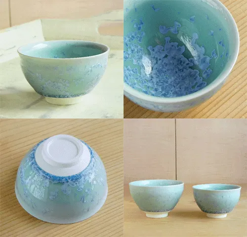 花紋の様に結晶が花開いた、品のある煎茶碗です。季節の和菓子や花茶など美しいお菓子を、より一層引き立てくれます。