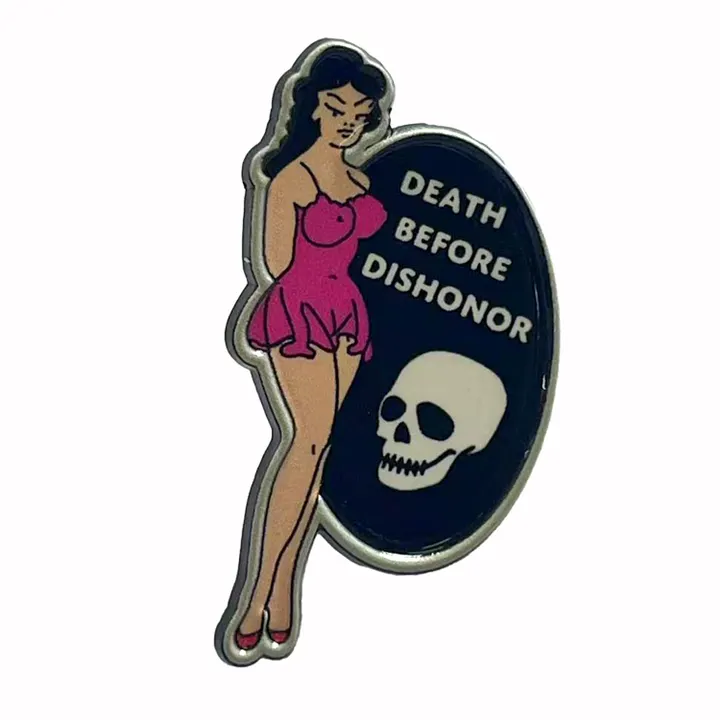 1960年代のアメリカンピンナップガールのデザインのエナメルピンバッヂです。セクシーな女性とモーターサイクルカルチャーをイメージしております。帽子やバッグ・レザージャケットなどにつけてビンテージテイストな雰囲気でご使用いただけます。