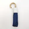 UVカット&完全遮光 遮熱 無地切り継ぎ 竹手元 晴雨兼用3段折りたたみ傘 27570 ネイビー×オフホワイト