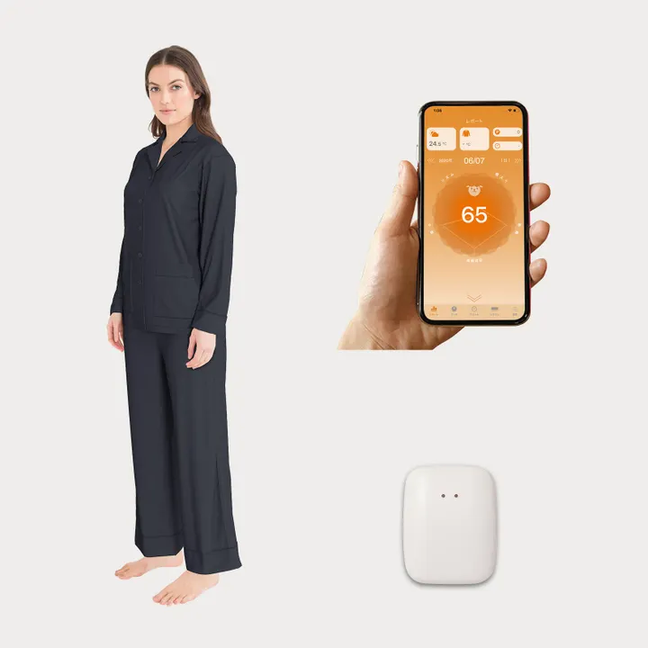 繊維専門商社のこだわりが、これまでにない着用感と装着されたセンサーでの睡眠の可視化をナイトウエアで実現しました。