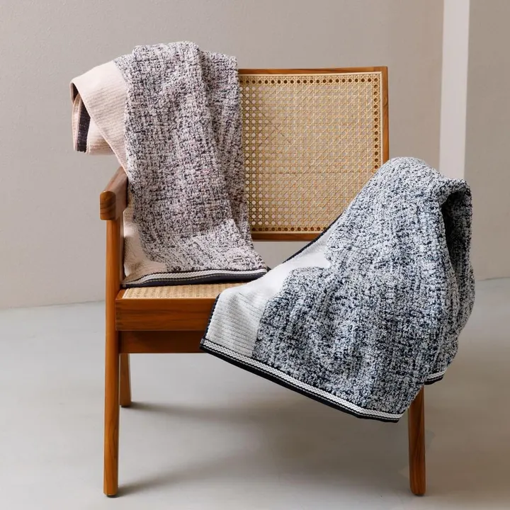 【伝統とデザインの融合_今治ブランケット】ミッシュ エレガントな雰囲気漂うツイード調のブランケットです。 超長綿を使用した贅沢なボリュームでラグジュアリーな時間を演出します。 特許を取得した独自の技法が生み出す、美しい質感に包み込まれながらご堪能いただけます。 色のバランスと質感の調整にこだわり、細部にわたる職人技が光る上質で心地よい肌触りの逸品です。 気品と実用性を兼ね、「ブレードテープ」風に仕上げたヘムがアクセント。 極上のくつろぎ時間を是非お楽しみください。 今治ブランド認定商品で、吸水性や毛羽落ち試験など厳しい基準をクリアした製品です。 ※JANシールの発行を希望される場合は、ご注文の際にメッセージをお願いいたします。