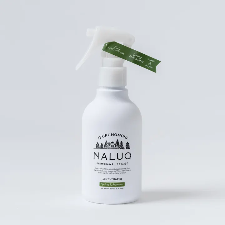 ■お部屋や衣類に森の香りを 北海道モミウォーターに、消臭のはたらきがある緑茶エキスを配合。カーテン、ソファ、車のシートなどのほか、頻繁には洗えないアウターや、外出後の臭いが気になる衣類に、さっと吹きかけておくと森の香りでリセットしてくれます。生活に天然の森の香りをとりいれてお楽しみください。 ■香り残りが良く、フレグランスとしてもおすすめ スプレーした後の香り残りも良いため、お気に入りのフレグランスとして、洗濯後の衣類等に、ちょっとスプレーしておくと、森に包まれた気分をお楽しみいただけます。 <選べる2つの森の香り> ●スプリングエフェメラル(グリーン) 北海道の森では、雪解けとともに春を告げる花が顔を出し、長かった冬の終わりを喜ぶかのように次々と花たちが咲き乱れます。森の中が一番色鮮やかに華やぐ季節です。この、春先に花を咲かせて夏まで葉をつけたあとは地中で過ごす植物たちのことを「スプリングエフェメラル」といい、別名「春の妖精」とも呼ばれます。ナルークスプリングエフェメラルでは、森の木々の中、小さな花たちが色とりどりに咲きほこる様子を香りで表現しました。 ●ライケン(ブルー) 森に立ち並ぶ木肌に、淡く落ち着いた色調の美しい模様を見かけることがあります。これらは地衣類、Lichenと呼ばれます。地衣類は霧の多い場所や空気のきれいなところでよく見られるともいわれ、幻想的な森の情景によく似合います。ナルークライケンでは、独特の表情で彩られた樹皮の美しさが印象に残るトドマツの森の、しっとりとして清涼な空間を香りで表現しました。