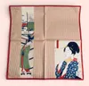 ハンカチ 綿100% 捺染プリント 京彩 一人美人 アカ