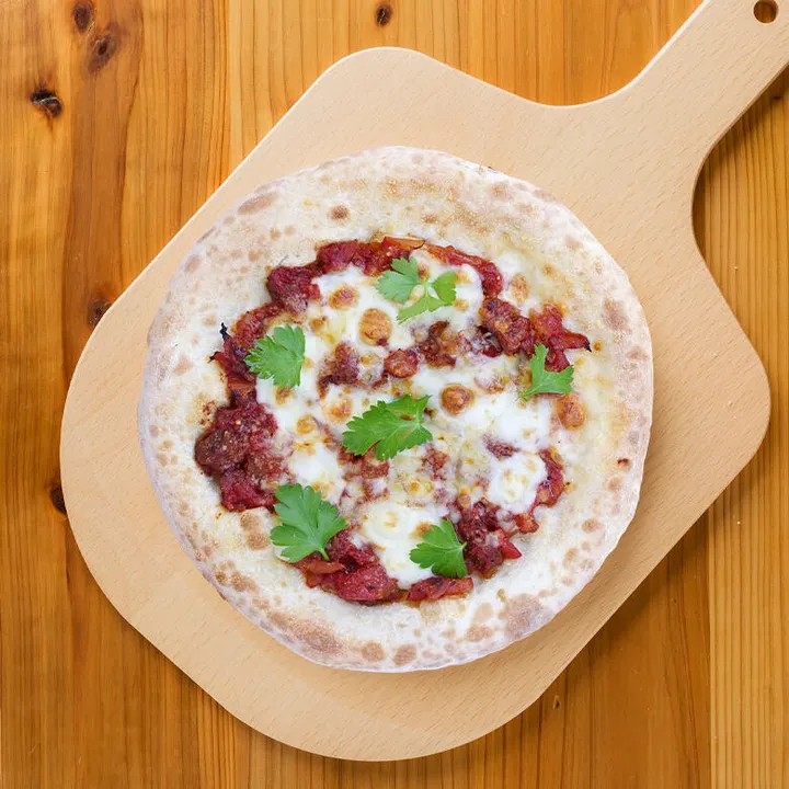 淡路牛をミンチにしてボロネーゼソースにした贅沢なピザです。 ミートグラタンソースのような味わいで、食べやすくあっさりとしています。チーズとの相性も抜群です。 \\完全に解凍してから焼きます// 常温で約1~2時間、冷蔵庫の場合は約5時間、自然解凍します。 時間がない場合は電子レンジで1分30秒を目安に解凍してください。