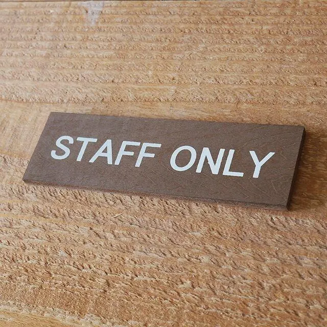 北海道 旭川市の自社工場で製作しています 木製のプレート ショップなどで、おしゃれな内装につけようと思って 探しても、ホームセンターなどではプラスチック製や 金属製のものばかり イメージに合うものがなかなか見つからない… ので、作っちゃいました! 素材の質感を生かしたナチュラル仕上げのプレートに 1枚1枚、手作業でシルクスクリーンで文字をプリント 素朴な仕上がりになっています 裏面にスポンジ両面テープがついています ※取り付けるドアや壁の材質などによっては 外す際にノリが残る場合があります ■商品サイズ 幅160×高60× 厚さ5.5mm ■合板を使用 1枚1枚、色合いや木目の柄の出かたが違います 木目に沿って、細かな凹凸や色ムラなどが出る場合があります 木の表面の小さな凹凸によって プリント文字に多少のかすれやガタツキが出る場合がありますが ご使用に問題の無い範囲で良品とさせて頂きます