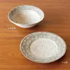 古くは室町時代より存在する、歴史ある三島柄。土鍋などでお馴染みの模様でもあります。三島柄の代表的な花模様が縁取りとして描かれています。