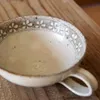 店内で抹茶、抹茶オレを出すのに使用することにしました。手にすっぽり収まり、小ぶりですが思ったより沢山入ります! 早速スタッフが落として欠けましたが‪🥲‎金継ぎが合いそうなのでチャレンジします。 口当たりもよく、飲みやすい印象です。 店頭販売も考えています。