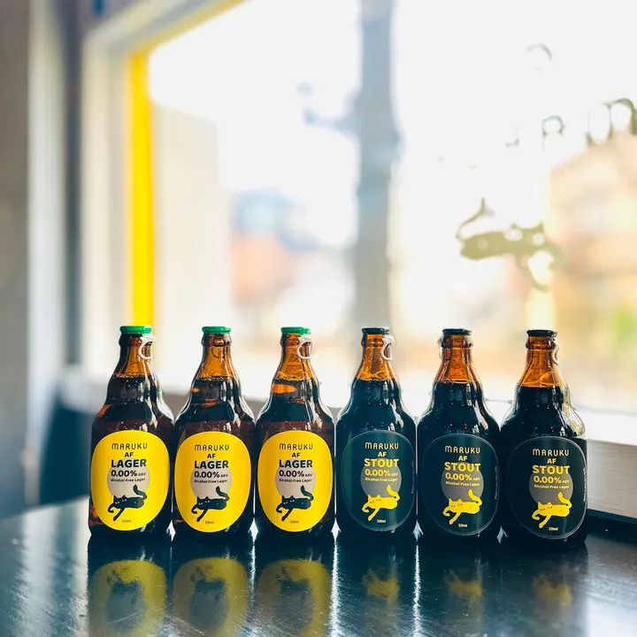 PB「MARUKU AF」は小樽ビール・銭函醸造所との共同開発。ラガーもスタウトも原材料は麦芽・ホップ・水のみ。雑味は一切ナシでabv 0.00%を達成。