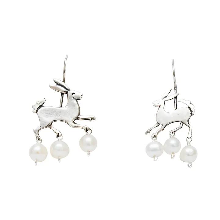 Aretes Pareja de Conejos|オトミうさぎのアシンメトリーピアス(シルバー・パール・天然石)