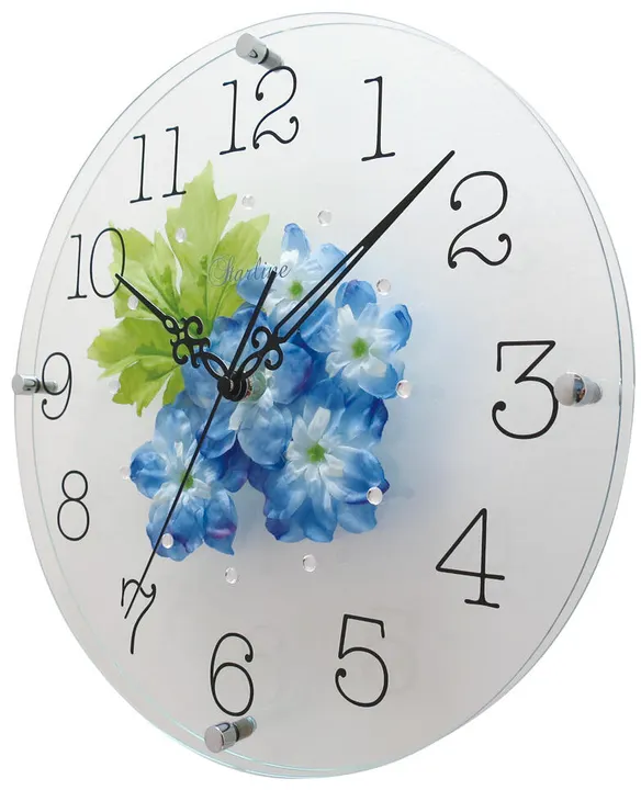 アートフラワークロック ガラス掛け時計 SW-1193BU デルフィニウム ブルー made in JAPAN