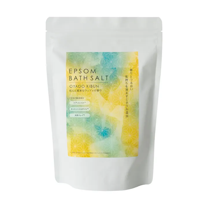 【和心と誠実なウッディの香り】 今日はどんなバスタイムにしよう? お出かけする時の洋服を選ぶように、夕食の材料を選ぶように、今日のバスタイムを選びたい。そんな想いから生まれた入浴料です。 エプソムソルト(硫酸Mg(保湿成分))をメインに、エッセンシャルオイル(天然芳香成分)、天然クレイ(ベントナイト(吸着成分))を合わせました。 入浴により体を温め、肌を柔らげしっとりなめらかな肌へと整えます。 ~香りとうるおい 気持ちを満たすミネラル温浴~ 天然由来の香り:檜(ひのき)に、赤松と糸杉、黒文字(クロモジ)の小枝と楠(クスノキ)を少々。 穏やかで安定感のある日本の香り素材で、癒しのひとときを。 湯色:透明タイプ 【合成香料、合成着色料、エタノール、鉱物油、防腐剤不使用】 【エプソムソルト入浴効果】 マグネシウムの作用で皮膚のバリア機能が高まり健やかな肌に導くと言われる 湯冷めしにくく保温効果が持続 発汗を促し汗と一緒に老廃物を排出、デトックスに 塩ではなく塩分を含まないため風呂釜を傷めにくい(必ずご家庭の風呂釜の種類をご確認ください)。 塩配合入浴剤で肌刺激を感じる方にもおすすめ(すべての方に刺激が起こらないというわけではありません)。