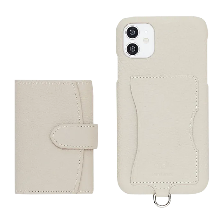 素材は、デミウルーボ の代名詞でもあるフランス産カウレザー。 ベルトを開けると札入れがあり、横向きのカード入れが3箇所ついています。 お札は事前に折る必要はなく、そのまま収納できる設計になっています。カスタムハードケースに装着できるようになっており、 シーンに合わせてスマホと財布をセットで持ち歩くことができます。 装着した状態でもそのままベルトが開けられるようになっているので、取り外すことなく使用可能です。 ストラップをつけてぶら下げても、カード入れが横向きについているので落ちないように設計されています。 単体としてももちろん、カスタムハードケースとセットでぜひご利用ください。 シンプルなデザインなので男女、年齢関係なくお使いいただけます。プレゼントにも最適です。 <カスタムハードケース> フランス産レザーを使った高級感あふれるレザーハードケース。 カード類を横から入れることができ、 ストラップでぶら下げても落ちないようにサイズ設計されています。 通常のクレジットカードなどは1枚、薄いカードは2枚入れることが可能です。ROND(ロンド)とTROIS(トロワ)をこのカスタムハードケースに装着することが可能となっており単体でも、セットでも様々な使い方ができる万能ケースです。 ※MagSafeはご利用になれません。 ※ストラップは別売りです。 ー仕様ー・素材本体:牛革金具:ニッケル・