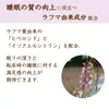 眠りの深さや起床時の 睡眠に対する満足感の向上に役立つ ノンカフェインの機能性表示食品ハーブティー ■睡眠の質向上に役立つ「ラフマ」由来エキスを配合 睡眠の質向上に役立つラフマ由来の 「ヒペロシド」と「イソクエルシトリン」を配合。 眠りの深さと起床時の睡眠に対する満足感の向上が期待できます。 就寝の1時間前を目安に飲むことをおすすめします。 ■10種のハーブをブレンドした、くせのない飲みやすい味 クセがなく飲みやすい「ルイボス」をベースに、 スッキリとした味わいの「ハイビスカス」「ローズヒップ」や 優しい香りの「ラベンダー」、「ローズマリー」などの ハーブをブレンド。 毎日飲み続けやすい味です。 ■おやすみ前にもうれしい“ノンカフェイン” 【摂取の方法】 カップにティーバッグ1袋を入れ、 熱湯を200mL注ぎ、3分間程度蒸らしたあと ティーバッグを10回程度上下に振ってから 取り出してお召し上がりください。 【一日当たりの摂取目安量】1袋(2g) 【販売名】アロマブルーム 眠りのハーブティー 【原材料名】 ラフマ葉抽出物(国内製造)、グリーンルイボス、ルイボス、ハイビスカス、ローズヒップ、ローズマリー、ラベンダー、カルダモン、レモングラス、レモンバーム、クワンソウ 【摂取上の注意】 一日の摂取目安量を守ってください。本品は多量摂取により、疾病が治癒したり、より健康が増進するものではありません。 ●本品は、疾病の診断、治療、予防を目的としたものではありません。 ●本品は、疾病に罹患している者、未成年、妊産婦(妊娠を計画している者を含む。)及び授乳婦を対象に開発された食品ではありません。 ●疾病に罹患している場合は医師に、医薬品を服用している場合は医師、薬剤師に相談してください。 ●体調に異変を感じた際は、速やかに摂取を中止し、医師に相談してください。 【届出番号】I458 【届出表示】 本品にはラフマ由来ヒペロシド、ラフマ由来イソクエルシトリンが含まれます。 ラフマ由来ヒペロシド、ラフマ由来イソクエルシトリンには睡眠の質(眠りの深さ・起床時の睡眠に対する満足感)の向上に役立つことが報告されています。 【機能性関与成分(抽出後)】 ラフマ由来ヒペロシド:1mg ラフマ由来イソクエルシトリン:1mg