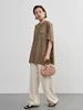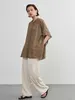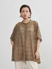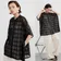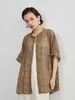 KNXT412-チェックレース・シアーブラウス・半袖オーバーシャツ・異素材ドッキングトップス OLIVE/FREE