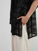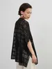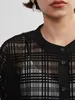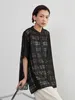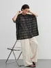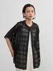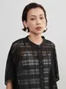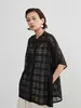 KNXT412-チェックレース・シアーブラウス・半袖オーバーシャツ・異素材ドッキングトップス BLACK/FREE