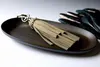 アシンメトリーなデザインが特徴的なオーバル形のプレート。 ステーショナリーやメガネ、アクセサリートレイとして、またミニタオル用のトレイとしてもお使いいただけます。 サイズ(mm):205×90×H30 カラー:ナチュラル ブラック ダークブラウン キャラメルブラウン 素 材:天然木(ブナ材、突板貼りMDF) ウレタン塗装仕上げ 原産国:日本 ※ お手入れは、水をしぼった柔らかい布でお拭きください。破損の原因となりますので水に浸さないようご注意ください。 ※ 限りある資源を大切にしロスを減らすために、材料の選別をせずに製作しています。杢目や節、色みなど風合いが異なる天然木ならではの表情をお楽しみください。 ※ 手作業で製作しているため表記サイズより若干の誤差が生じる場合があります。