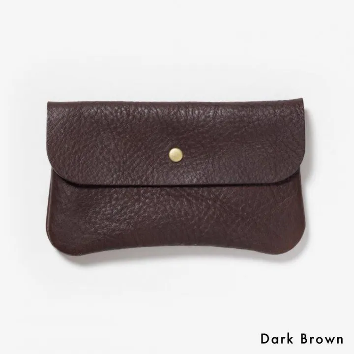 ◉優しい手触りの革を使ったシンプルなポーチ◉ - 革の質感を活かしたシンプルなポーチ。シボがある優しい手触りの革や、落ち着いた色合いの真鍮のホックなどナチュラルな質感の素材にこだわりました。 複数の通帳をまとめたり、メモ帳とペンを一緒に入れておいたり。シンプルなので色々なことに活用できそうです。カバンの中で散らかりがちな小物を整理するのにも便利なサイズです。 - ■サイズ H10.5×W18.0×D2.0cm ■素材 牛革(ヴォーノ)・真鍮 ■原産国 日本 - ご注意 ※使用する部位によりシボの入り方が異なります。また、植物性タンニン鞣しの革を使用しているため、色むら、シワ等がある場合がございます。 ※撮影の状況、閲覧する環境によって⾊などが変わって⾒える場合があります。