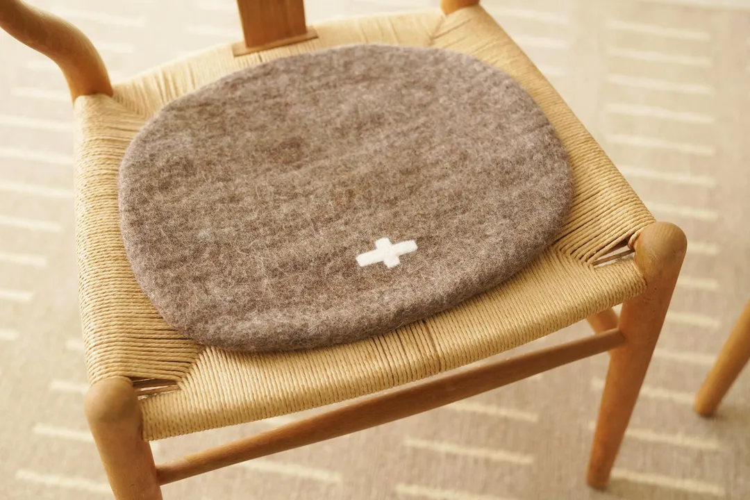 アンダイドプラスのオリジナル、人気のフェルトチェアーパッド。 ウール100%の手作りフェルトは空気をたくさん含んでとっても暖かくクッション性もあり、チェアーパッドとして最適です。 中まですべてウールなので、へたることもなく長くお使いいただけます。 北欧風のシンプルなデザインでナチュラルな色合いなので、どんな椅子にも合わせやすく、あたたかい雰囲気にしてくれます。 この楕円のチェアーパッドは、ベンチのような椅子に並べて置いてもいいし、ワイチェアーなどの北欧のペーパーコードの椅子にもよく似合います。 手仕事でひとつひとつ作られたチェアーパッド、使ってぜひその良さを実感してください。 裏にundyed+革のタグが付いています。 ◇手作りのフェルトです、個体により色、柄に多少違いがございます。ご了承ください。
