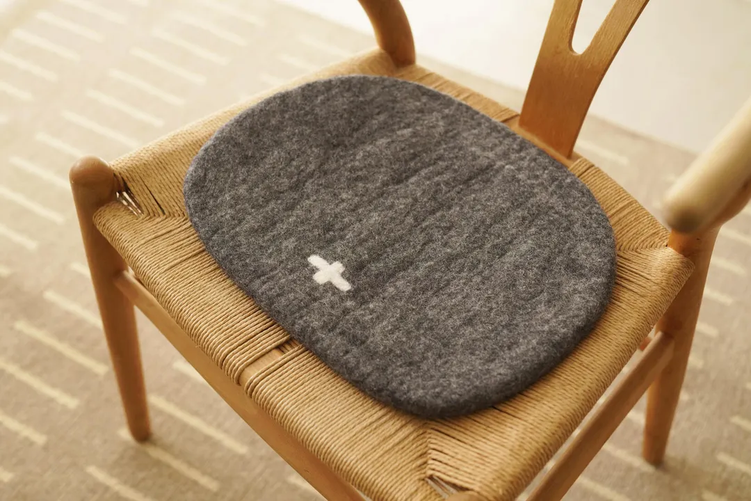 フェルト チェアーパッド 楕円 プラスマークデザイン/椅子座布団 グレー