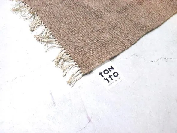クオリティの高い一点ずつ国内生産された手織りの SMALL RUG。リビングシェルフの上やペット用など自由な 用途でお使い頂けます。 小さいサイズですが一織りがとても丁寧で少ししっかりめのRUGです。 経糸にはラミー(麻)糸を使用しています。 一枚で高見えするスモールラグはシェルフマットにおすすめ! 全て国内で開発したTONITOオリジナルのリサイクルウール糸を使用したラグ。 一点一点に想いを込め、全てが国内にて手織りで生産されています。 個体ごとに微妙な表情の違いがあるのも素晴らしさです。 原料である廃棄衣料の回収・選定から私たちが担っています。 回収段階でそれぞれの色ごとに分別する事で、元の洋服の色味をそのまま生かした表現が可能となっています。 手間暇はかかりますが、新たに染色する必要のない環境に配慮した工程を選んでいます。 また、一度お洋服になった後に再度紡績されたリサイクルウール糸の質感は、柔らかく、ラグなどに使用されるウール特有のチクチクした感覚を与えません。 ※紡績過程できちんと水通しが行われております。 ラグとしてお使いいただく為のある程度の固さを表現するエッセンスとして、天然素材にこだわり、一部バージンウールとラミーが使用されています。 過剰包装を避ける為にパッケージに使用する紐は、故繊維の現場の生地の端切れを再利用しています。 ※紐はアソートです。 – TONITOのモノづくりに関わる方々 – ・特定非営利活動法人 ひょうたんカフェ ・社会福祉法人 聖森会 はたのさと ・社会福祉法人 青い鳥 ・木玉毛織株式会社 – 製品のお取扱について – ・ラグ用途には滑り止めおよびフローリング保護の為、市販の滑り止め下敷きシートの併用を推奨しております。 ・摩擦や経年劣化で、ウール製品特有の毛玉などが発生する可能性がございます。予めご了承ください。 ・強い摩擦や使用条件により色移りすることがありますので、ご注意下さい。 ・本製品は手洗いを含め、お洗濯はできません。ドライクリーニングのご使用もお避け下さい。 ・濡れた状態で放置すると他に色移りする場合がありますのでご注意下さい。 ・パイルや糸つなぎ目、糸端が飛び出ることが あります、引っ張らずに中に入れて下さい。 ・製作の工程が手作業のため、商品1点1点ご使用には支障のない範囲の歪み・織りムラ・ほつれが見られることがございます。サイズについても個体差があるため予めご了承ください。 ※その他お取り扱いに関しましては、商品に付属のアテンションタグをご覧ください。 ※詳しい洗濯方法については、商品の品質表示タグをご覧ください。 ※こちらの価格には消費税が含まれています。