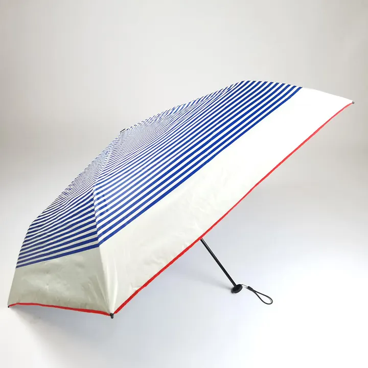 空飛ぶカーボンアンブレラ 極軽3段折りたたみ傘 マリンボーダー 晴雨兼用 UVカット&完全遮光 遮熱 27703 オフホワイト×ネイビーボーダー