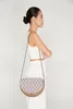 ◆使う度に心を豊かにしてくれる三日月型ショルダーバッグ。カラフルなのに出しゃばらないインナーバッグは、私物の小分け収納に便利。フレームやストラップはブラウン系で統一させ、フロントカバーを主役に。デザイン性も優れているのでギフトにしても喜ばれます。ハーフムーン(半月)型ショルダーバッグです。■構成部品 Frame:Bronze Shoulder:Scubid - Pearly Brown Chiara In-Bag:White ZigZag