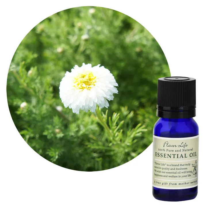 【フローラル系】 甘さとフルーティーさをもったやさしい香り 学名:Anthemis nobilis|原産国:フランス|抽出方法:水蒸気蒸留法|抽出部位:花・茎・葉 リンゴのような、甘い香りが特徴です。小さな白い花から取れる希少な精油です。 たくさん働いた日やあわただしかった一日の終わりに、疲れを癒しゆったりとしたいときに。 ※香りが強いので少量から使用することをおすすめいたします。 <香りの相性> 柑橘全般(特にオレンジやマンダリンなど甘みのあるもの)と相性がよく、多めに加えると明るく華やかなブレンドになります。